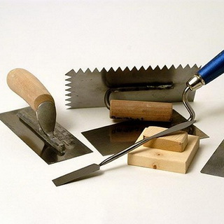 - кельма (мастерок) различной формы. Широкая кельма подходит для разравнивания раствора при кладке, заглаживания пола, а узкий инструмент в основном предназначен для заделывания трещин на штукатурке и используется при укладке керамогранита;