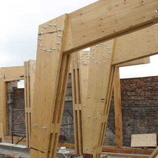 В строительстве используют клееные деревянные конструкции двух видов: несущие и ограждающие. Несущие конструкции являются многослойными, склеенными из нескольких слоев древесины. Нередко их усиливают путем вклеивания металлической или пластмассовой арматуры.