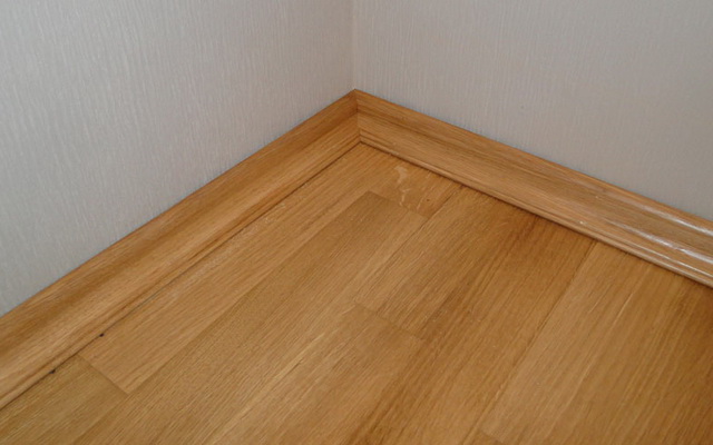 После устройства фризового ряда паркета устанавливают плинтусы и галтели.