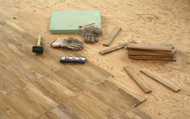 Перед тем как уложить штучный паркет на деревянный пол, нужно очистить настил и проверить его ровность и горизонтальность, при этом обращая внимание на качество крепления досок к лагам. Шляпки гвоздей, недостаточно углубленные в тело досок, добивают.