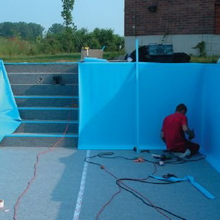 Пленки ПВХ для бетонных бассейнов довольно устойчивы к химическим препаратам, но под воздействием солнечных лучей выцветают. К тому же они быстро пачкаются и трескаются по углам. Продержаться в качестве покрытия такая пленка может около 7 лет.