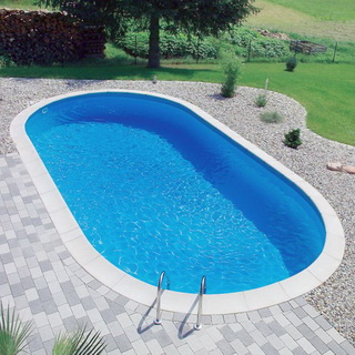 Овальные бассейны сочетают в себе преимущества прямоугольных и круглых сооружений. Их закругленные углы улучшают сопротивляемость системы давлению воды, на них можно безбоязненно опереться во время отдыха.