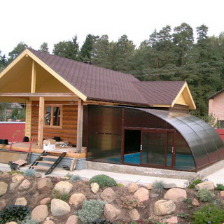 Тогда водоем допустимо активно использовать круглый год, продлится срок его службы, а ухода потребуется меньше, ведь будет защита от грязи, пыли, листьев и пр. Зимой крытый павильон можно обогревать.