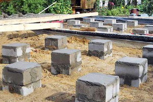 Опоры будущей несущей конструкции следует располагать на дистанции 1,5 – 2 м друг от друга. Обязательно их наличие на углах здания, а также в местах пересечения внешних и внутренних стен. Для возведения столбчатых фундаментов используется различный материал: бутобетон, бутовый камень.