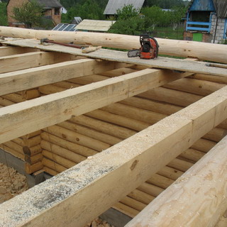 Балки с черепными брусками и брусками, прибитыми с одной стороны |