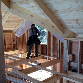 В целях предохранения теплоизоляции чердаков от смещения и уплотнения при хождении по ней на балки укладывают доски в направлениях вероятного движения.