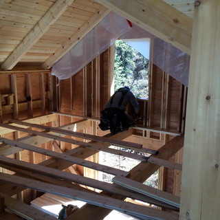 Снизу балки следует оставлять покрытыми для лучшего проветривания. Необходимо антисептировать все деревянные элементы перекрытия. Особенностью чердачных перекрытий по деревянным балкам является наличие теплоизоляции, укладываемой между балками.