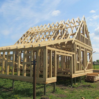 В каркасно-обшивном доме каркас собирают из брусьев — вертикальных стоек, нижней и верхней обвязки. Каркас обшивают внутри и снаружи обрезными досками, пространство между которыми заполняют теплоизоляционными материалами. Стропила и балки пола, выполняемые из досок толщиной 50 мм, создают дополнительное укрепление каркасу.