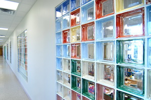 В массовом строительстве применение стеклоблоков распространено при выкладывании проемов на лестничных площадках. Что касается жилых помещений, то в последнее время стеклоблоки стали очень модным материалом, который позволяет находить самые неожиданные решения в оформлении интерьера. Сейчас использование стеклоблоков популярно при выкладывании стен мансард и зимних садов, туалетов и ванных комнат, внутренние перегородки. Впрочем, стеклоблоки годятся не только для стен. Ими отделывают потолки и крыши, делают из них своды и навесы.