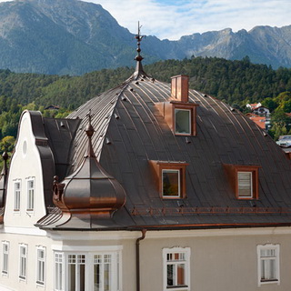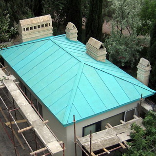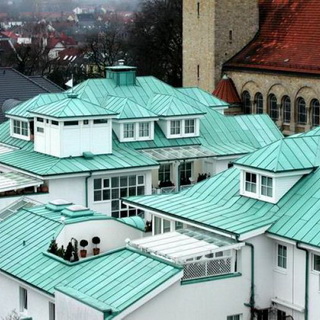 В европейских городах многие крыши имеют благородный зеленоватый оттенок. Это так называемая патинированная медь, то есть, результат воздействия на медную кровлю окружающей среды, в т.ч. атмосферных осадков, солнца, воздушных потоков и т.п. Скорость образования патины зависит от интенсивности и взаимодействия факторов. Золотистая медь сначала тускнеет (3-6 месяцев), затем превращается в темно-коричневую (1-3 года). Окончательно медно-зеленая патина появляется на кровле через 5-25 лет.