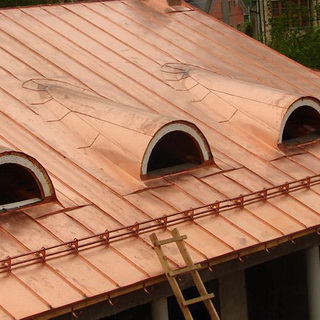 При толщине кровельного листа 0,6 мм на 1 м2 пойдет 6,24 кг меди (формально 1 м2 при толщине листа 0,6 мм весит 5,36 кг, но нужно еще учитывать массу металла швов).