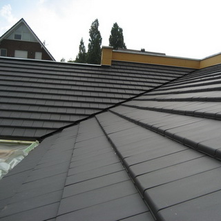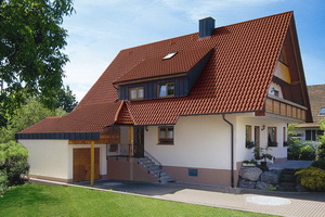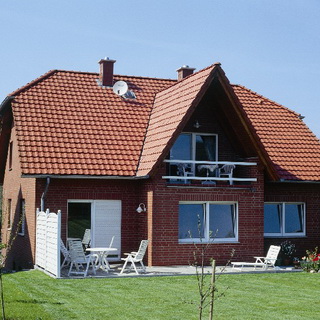 Эта кровельная керамическая черепица относится к одной из традиционных форм, хорошо вписывается в загородный пейзаж, а в модернизированном дизайне (с двойным стыковым фальцем) надежно спасает от дождя даже при пологих скатах с минимальным, 18° уклоном. Большим спросом пользуется модернизированная лотковая черепица со своеобразным названием «мункнунн» («монах-монашка»). На кровле верхний выгнутый «лоток» перекрывает продольные смежные края двух нижних — вогнутых. Для этой черепицы необходим уклон не менее 40°. Хорошими отзывами пользуется керамическая черепица для кровли фирмы Rupp Keramik. Среди них наиболее известна пазовая черепица с S-образным профилем, повышенная продольная волна которой не только способствует эффективному водостоку, но и усиливает контраст света и тени, придавая кровле особую эстетическую ценность.