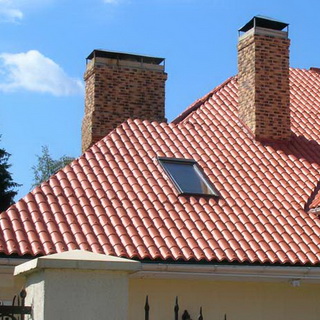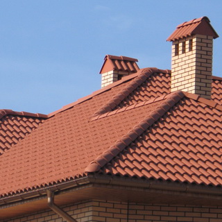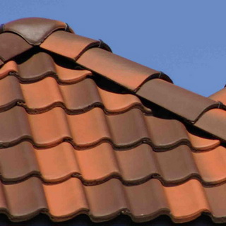 Типичные размеры керамической черепицы -390×240 и 330×420 мм. Покрытие очень тяжелое, масса 1 м2 такого покрытия 40-70 кг, поэтому угол ската крыши должен быть не менее 25°, иначе придется делать очень мощную стропильную систему. Долговечность черепичной кровли более 100 лет. Московским предприятием «БРААС-ДСК-1» выпускается цементно-песчаная черепица размером 420×330 мм. Она дешевле, но и менее долговечна, чем керамическая.