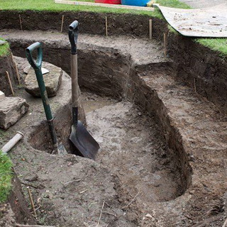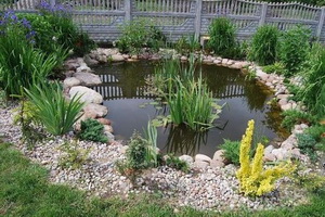 Работа по созданию пруда даче начинается с установки пластиковой емкости. После выбора места под пруд нужно сделать разметку и выкопать котлован. На дно ямы необходимо насыпать песок, разровнять по уровню и установить емкость. Полости между стенками котлована и емкостью следует засыпать мокрым песком, одновременно наполняя водой пруд.