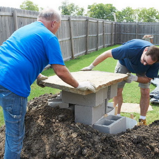 Когда основа конструкции построена, можно перейти к сооружению площадки. Ее нужно вымостить плоскими камнями с рваными краями, укладывая материал на песчаное основание — по принципу укладки брусчатки.
