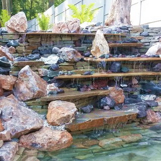 - Водный каскад с водоемом и стилизованной площадкой для отдыха