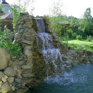Декоративный водоем с водопадом своими руками создается на базе искусственно построенной стенки высотой 7 м. Так что в данном случае потребуется и значительное количество материала, и затраты сил, но в результате получится капитальная долговечная конструкция, которая прослужит не одному поколению.