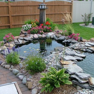 Осталось только все украсить камнем, морской галькой, посадить декоративную растительность и запустить в пруд рыбок.