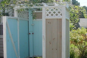 Помимо перечисленных материалов, при возведении летнего душа и туалета также применяют шпон, фанеру, древесно-стружечные, древесноволокнистые и столярные плиты.