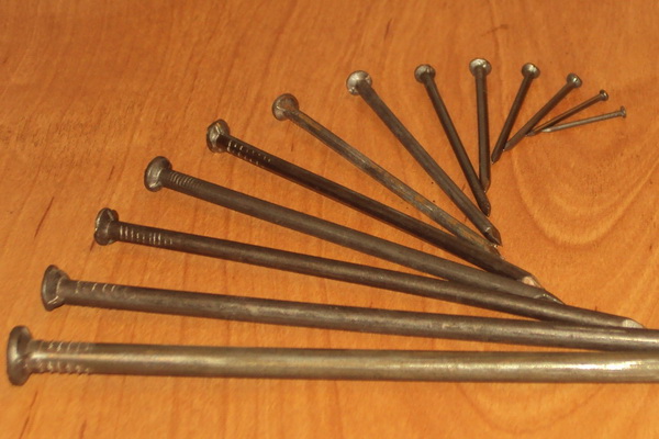 Гвозди бывают длиной от 6 до 250 мм и толщиной 0,7-0,8 мм. Для каждого вида работ необходимо использовать определенные гвозди. Например, при устройстве деревянного пола в летнем душе или туалете рекомендуется выбирать гвозди, которые примерно в 2-2,5 раза длиннее толщины доски.