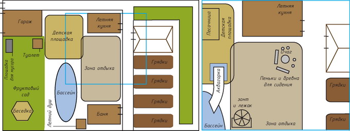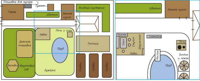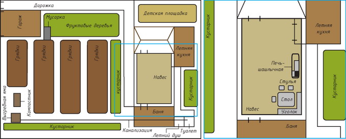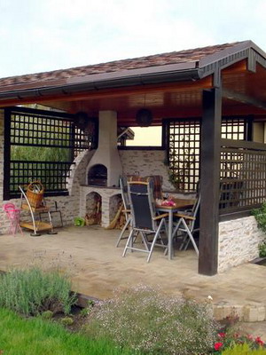 Размещая летнюю кухню на дачном участке, учитывают доступную площадь и выбирают то место, где сопрягаются хозяйственно-бытовые зоны, зоны насаждений и отдыха.