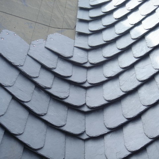 Сланцевая кровля представляет собой плитки толщиной 5-7 мм и весом 45-50 кг/м2, которым можно придать различную форму, размер и цвет (серый, черный, бордовый, коричневый или зеленый).
