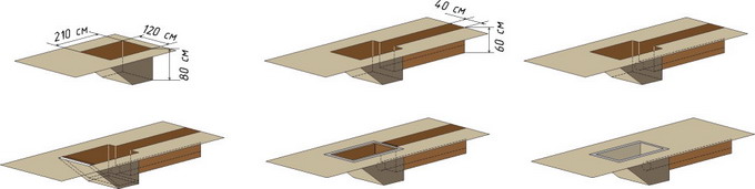 Строительство уличного туалета начинают с того, что на подготовительном этапе роют небольшой котлован со сторонами 1,2 x2,1 м и глубиной около 0,8 м. При этом фронтальную сторону котлована выполняют под уклоном до середины дна. От тыльной стороны котлована до точки сброса в канализацию роют траншею глубиной около 0,6 м и шириной 0,4 м из расчета укладки канализационной трубы диаметром не менее 200 мм. Уклон уложенной трубы должен составлять не менее 5°. Если это сделать не удается, на месте закладки сборника производят досыпку. Место соединения сточной трубы с канализацией оборудуют колодцем, который должен отстоять от жилых построек, но иметь удобный подъезд для ассенизаторской машины.
