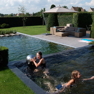 Бетон – это самый надежный и долговечный материал для дачного пруда: по дну из железобетона можно будет ходить без опаски, например, когда нужно произвести очистку водоема или проредить и пересадить растения. Однако работать с бетоном намного сложнее, чем с прочими материалами. Здесь потребуются полное соблюдение технологии (сварка арматуры, изготовление опалубки, заливка бетоном), двойная гидроизоляция (с обеих сторон бетонной отливки — снаружи и внутри) для защиты от грунтовых вод. Стоимость всех этих работ по созданию декоративных прудов из бетона самая высокая. Конечно, можно сэкономить на гидроизоляции, используя строительный состав специальных марок, не подверженный воздействию воды, но этот материал обойдется еще дороже, а его применение потребует точного соблюдения технологий отливки. Помимо высокой стоимости, такой пруд на даче из бетона, однажды построенный, затем переделать будет крайне затруднительно.