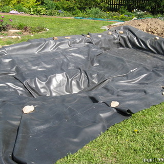 Полиэтилен можно использовать для создания водоема. Но только в том случае, если толщина пленки для пруда составляет 500 мкр, причем укладывать её на дно декоративного водоема нужно в 2-3 слоя. Стоимость этого пленочного покрытия среди других самая низкая. Но данный материал ненадежный, поскольку его можно легко порвать, например острыми камнями и т. п.