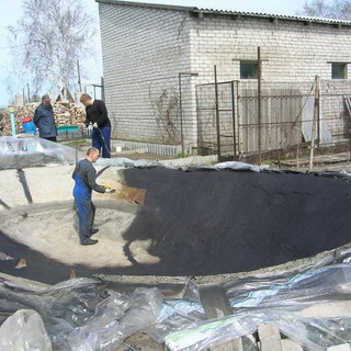 Пленка из бутилкаучука более прочная и надежная — срок ее службы составляет 50 лет. Материал не поддается разрушению в результате воздействия ультрафиолетовых лучей, не повреждается под воздействием низких температур (выдерживает температуру до -35 °С), поэтому сливать воду из водоема на зиму не нужно. Благодаря этим качествам можно сделать пруд из пленки в любое время года — и зимой и летом, но лучше, когда грунтовые воды оттают, чтобы почва после сооружения водоема не просела.