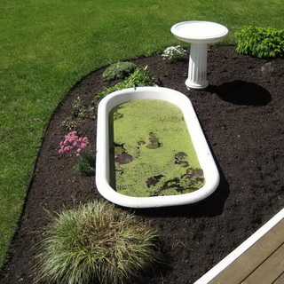 Один из самых дешевых способов создания водоема — это использование подручных средств: старой бочки, таза, ванной, большой шины и пр. В данном случае, как и при использовании любой готовой емкости, весь процесс строительства сводится к сооружению котлована для заглубленного водоема или выполнению каркаса или облицовки для установки декоративного водоема над уровнем земли. Причем дачный пруд из подручных материалов можно сделать и обычный, и многоуровневый, и каскадный — имеются различные варианты, главное, чтобы нашелся подходящий материал.